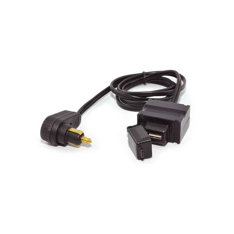 Es ist ideal für das Einstecken in die Serienbordsteckdosen von BMW, Triumph und Ducati und ermöglicht einfach durch Einlegen in den Tankrucksack das Laden von USB-Verbrauchern wie Handy, Kamera oder sonstige Stromverbraucher.