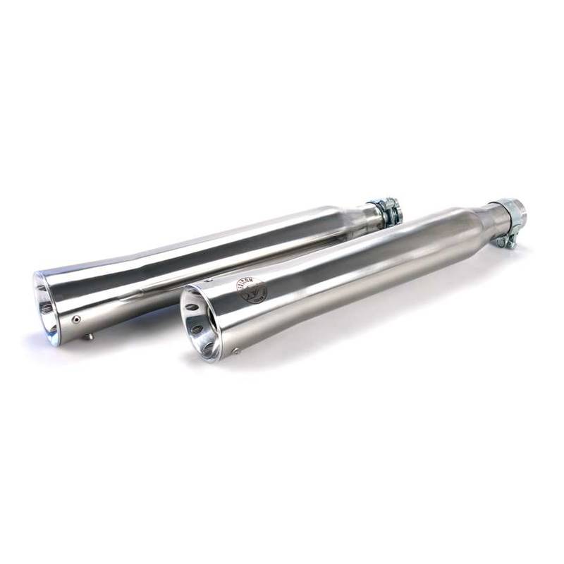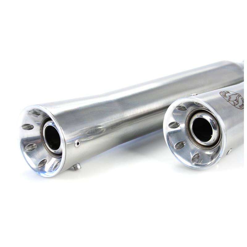 Kerniger dumpfer Chopper-Sound und maximale Leistung. Hergestellt aus V4 Edelstahl, wahlweise in hochglanz-polierter bzw. matt-schwarzer Ausführung. Krümmer in Doublewall Technology. Doppelwandiger Krümmer mit 60mm Durchmesser. Endtöpfe im Groove Style. Wahlweise als 2-2 Komplettanlage bzw. Ersatzdämpfer, passend auf Serienkrümmer und mit bzw. ohne Katalysator lieferbar.