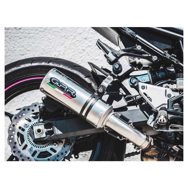 Original GPR-Produkt, das dank langjähriger Erfahrung in der Motorradweltmeisterschaft entwickelt wurde, bietet ein innovatives Design, eine Leistungssteigerung, eine relevante Gewichtseinsparung und eine Verbesserung des Motorradklangs.