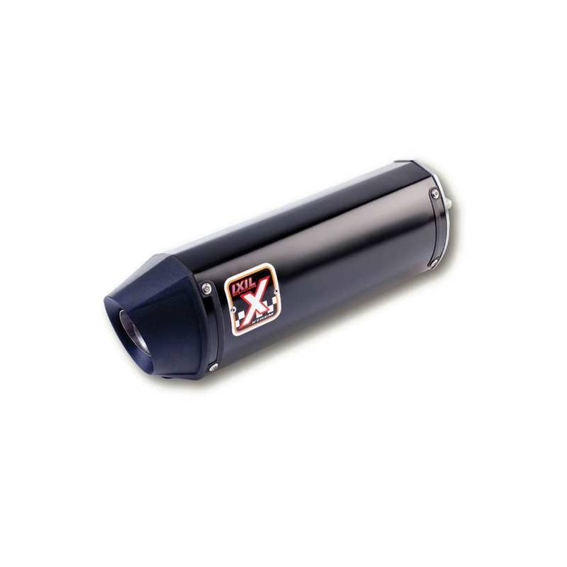Schalldämpfer aus Edelstahl AISI 304 mit schwarzem Lack-Finish gefertigt. Asymmetrische und konische End Kappe, hergestellt mit Hochleistungs-Polymer und fertig in natürlichen schwarz. IXIL HEXOVAL XTREM EVOLUTION. Edelstahlendtopf gebürstet mit schwarzer Endkappe und Mehrkammersystem. E-geprüft.