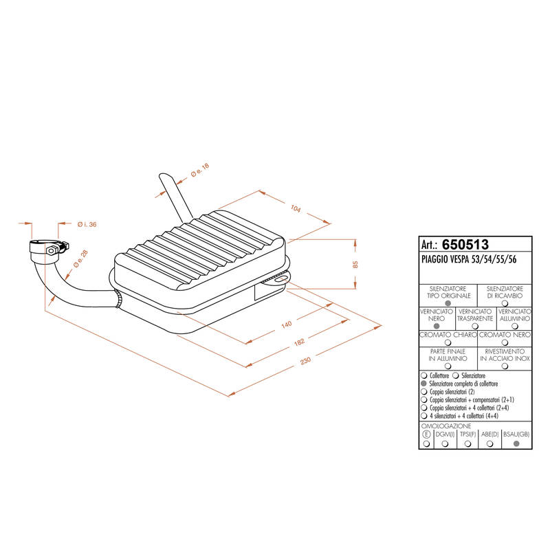 Auspuff Sito Vespa 125 VM1T/2T VN1T/2T 1953-1958
