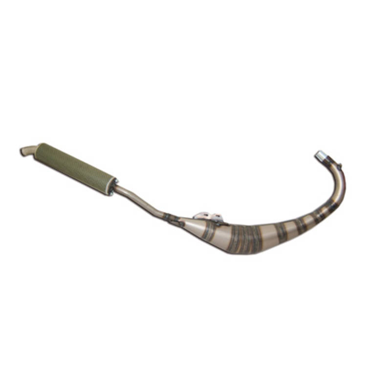 Leise Auspuffanlage mit bestem Preis-Leistungsverhältnis. Deutliche Leistungssteigerung im mittleren und hohen Drehzahlbereich. Carbon-Schalldämpfer mit Titanium-Effekt. Kann für Zylinder bis 70ccm und Vergaser bis 21mm verwendet werden.
