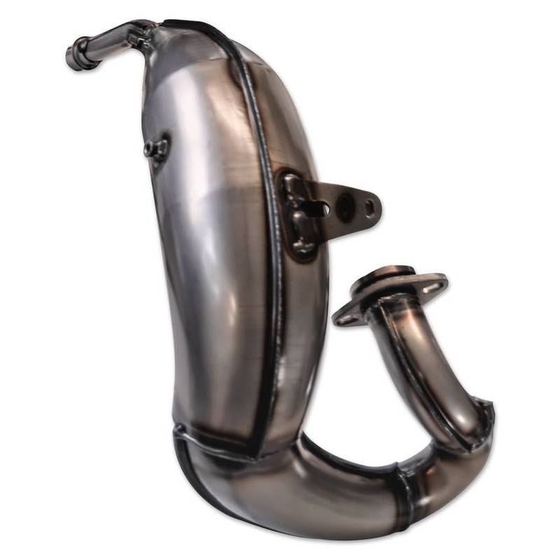 Dieser Auspuff ist für die rechte Seite ausgelegt und verfügt über 2 Gewinde für das Montieren der Blende.