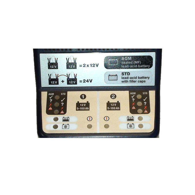 Vollautomatisch – Keine Auswahl erforderlich, keine Batteriekenntnisse erforderlich! Bis zu 2 x 12V-Batterien anschließen, das Ladegerät erledigt den Rest!