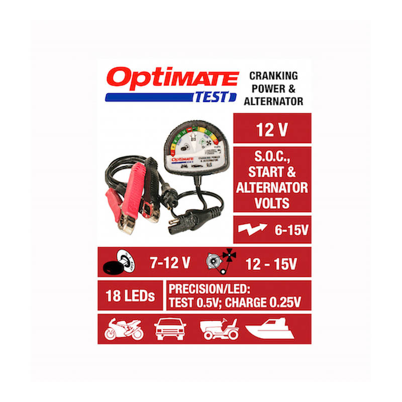 OptiMATE 12V-Tester für Ladezustand der Batterie, Startleistung und Fahrzeugladesystem.