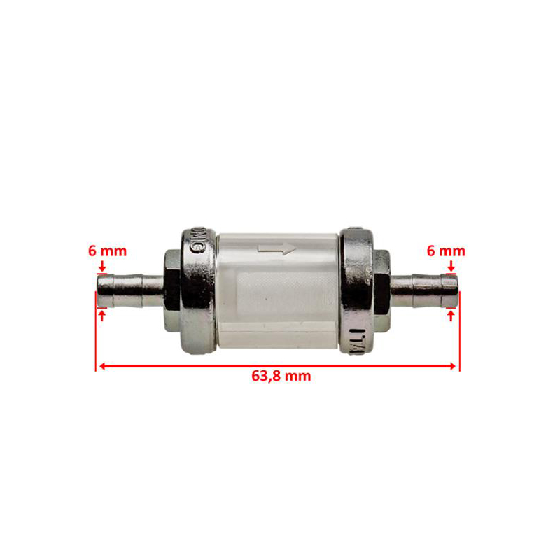Ein kleines aber wichtiges Detail an jedem Motor. Verhindert das Verdrecken des Vergasers durch verunreinigtes Benzin. Dieser Filter kann geöffnet und gereinigt werden.