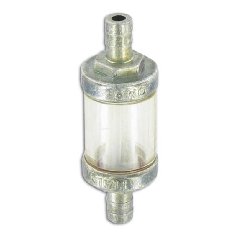Ein kleines aber wichtiges Detail an jedem Motor. Verhindert das Verdrecken des Vergasers durch verunreinigtes Benzin. Dieser Filter von TNT ist etwas grösser als der Malossi und verfügt über verchromte Anschlussstücke. Dieser Filter kann geöffnet und gereinigt werden. Anschluss auf beiden Seiten: 8mm