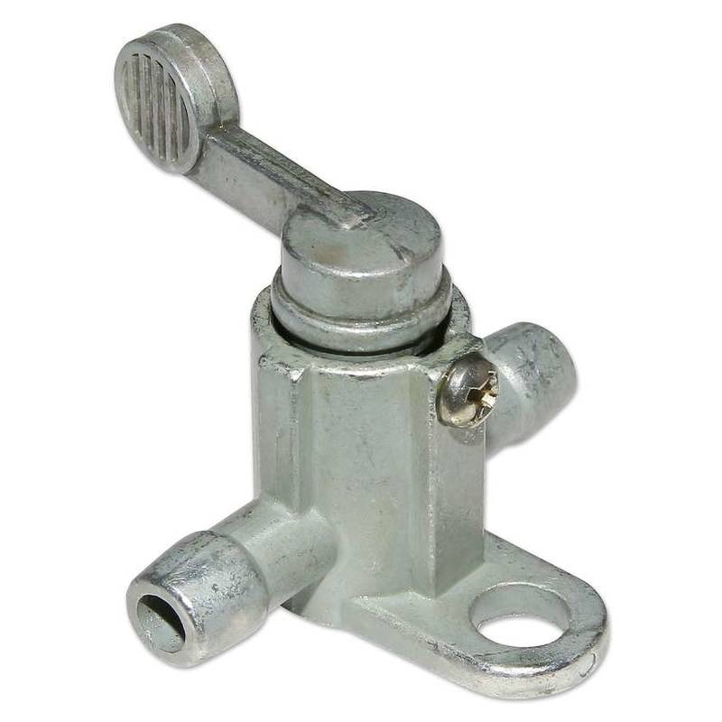 Manueller Benzinhahn aus Aluminium mit 8mm Anschluss und Zweilochbefestigung. Made by OMG in Italy.