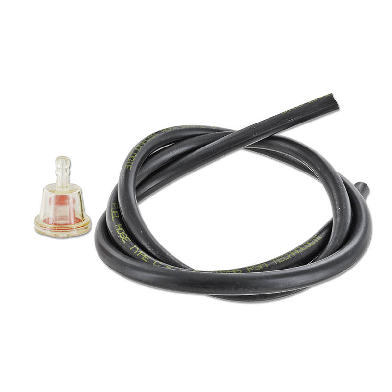 Schwarzer Benzinschlauch ohne Gewebeeinlage inklusive konischem Filter (transparent).