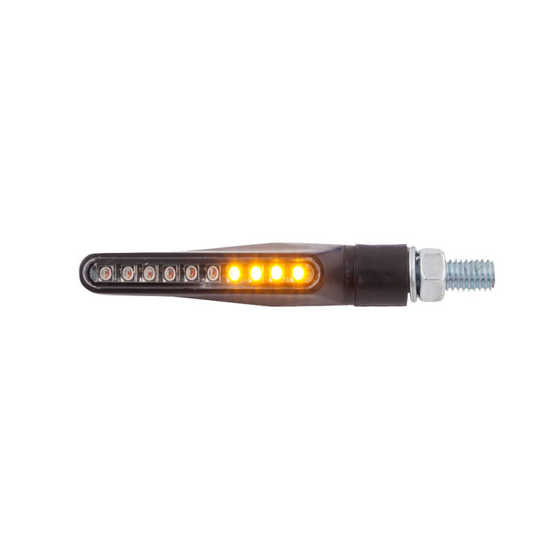 Blinker *iXS* (Paar) X-LEDIND-70 SEQUENTIELL ALU – Laufeffekt mit 10 LED SCHWARZ/GETOENT (M8x1.25 – 75x14x28mm) (E-Hom.)