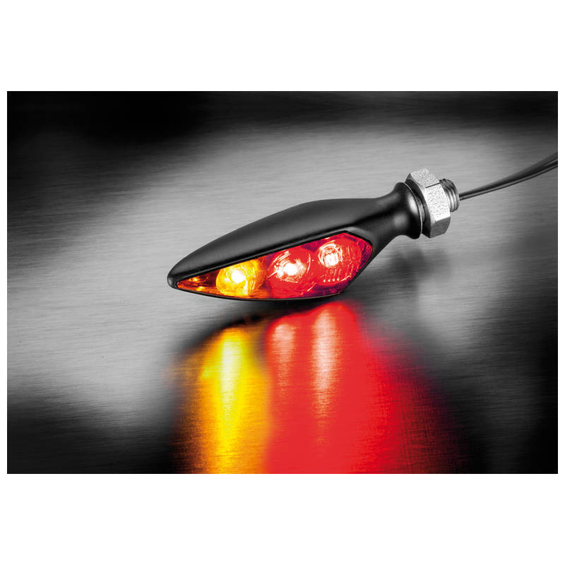 Das kompakte Gehäuse des Rhombus S DF Dark beherbergt sowohl den Blinker, als auch Brems- und Rücklicht und bietet somit eine optimale Möglichkeit der Gewichtsreduzierung am Motorrad. Geeignet für alle Motorradtypen.*