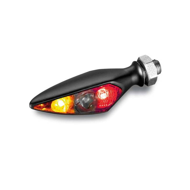 Das kompakte Gehäuse des Rhombus S DF Dark beherbergt sowohl den Blinker, als auch Brems- und Rücklicht und bietet somit eine optimale Möglichkeit der Gewichtsreduzierung am Motorrad. Geeignet für alle Motorradtypen.*