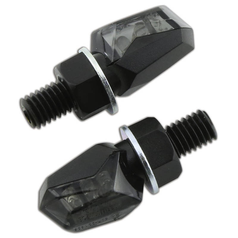 Modernste Lichttechnik in extrem kleinen Maß verpackt. Ein optisches Highlight an jedem Motorrad. Mini-Blinker mit schwarzem Kunststoffgehäuse und getöntem Glas, E-geprüft (nur für hinten).