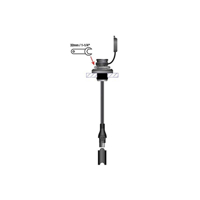 Diese SAE-Buchse eignet sich ideal für den festen Einbau in Querbleche oder schwer zugängliche Verkleidungen. Da die Montage von vorne erfolgt, muss lediglich ein 25 mm Loch gebohrt werden. Beim Festziehen der M 25 Mutter wird das Gummi gestaucht und sorgt dadurch für einen festen Sitz. Das Material bleibt auch bei Temperaturen unter Null Grad flexibel.