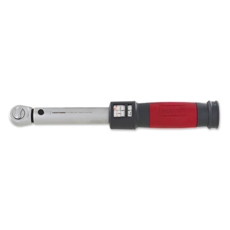 Sehr hochwertiger Drehmomentschlüssel von Kraftwerk mit einer einfachen ablesbaren Anzeige. Das Drehmoment wird per herausziehbarem Handrad hinten am Griff mechanisch eingestellt.