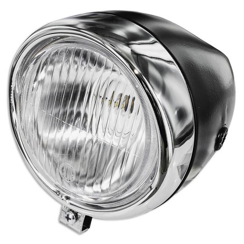 Eier-Lampe rund Ø130mm schwarz-chrom Mofa/universal seitliche B,