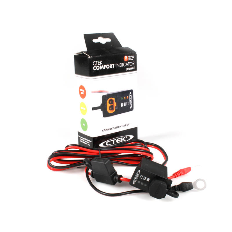 Dies ist ein Schnellverbinder mit Anzeigeinstrument zur Montage auf dem Armaturenbrett. Das Anzeigeinstrument zeigt den Ladezustand der Batterie einfach und deutlich an. Das Ladegerät wird an die Steckverbindung auf dem Armaturenbrett angeschlossen, was den Ladevorgang bequem, praktisch und einfach macht. Montieren Sie die Steckverbindung an das Armaturenbrett und verlegen Sie das Kabel zur Batterie. Comfort Indicator – Panel ist in zwei verschiedenen Kabellängen erhältlich. Viele Fahrzeuge haben genug Platz auf dem Armaturenbrett, der für dieses Modell verwendet werden kann. Kabellänge: 150 cm Ringösenklemme: M8 (8,4 mm) bei beiden Modellen Größe des Verbinders/Anzeigeinstruments: 35 mm x 21 mm x 50 mm Sicherung: 10 A
