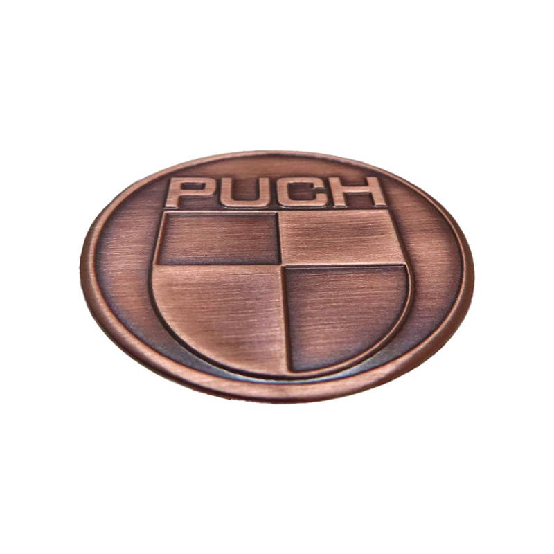 Emblem Puch Ø 38mm aus Metall in kupfer
