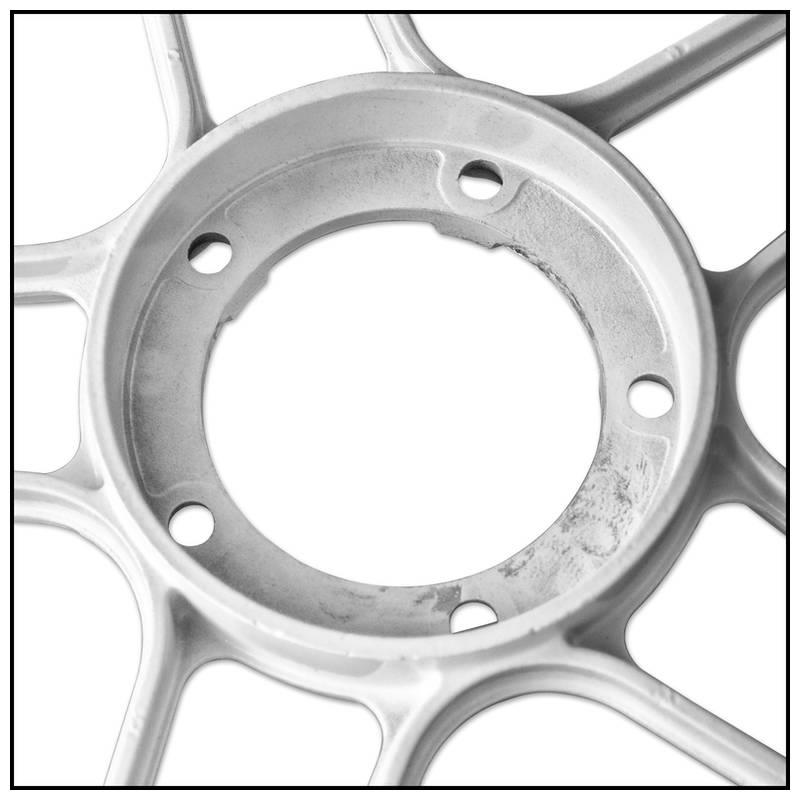 Nachbau der GRIMECA 17 Zoll Puch Felge mit der typischen 5-Stern Bauweise. Passend zu Mofas mit Leleu oder Grimeca Nabe.