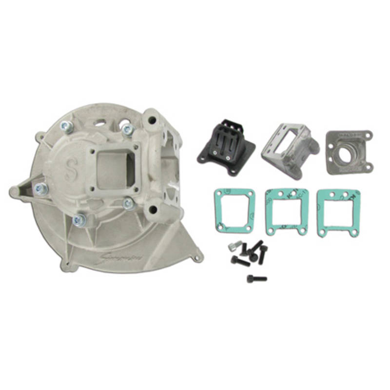 Das Gehäuse verfügt über 4 Stehbolzen (M7), diese sind nicht im Lieferumfang enthalten! Lieferung gemäss Abbildung mit Malossi 4 Klappen Membrane.