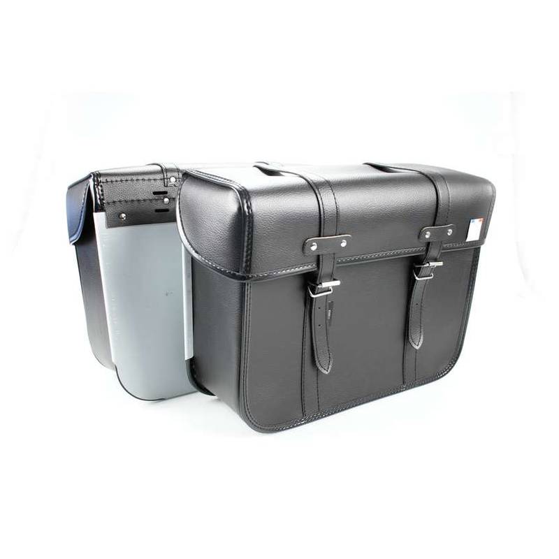 Gepäcktaschen (Paar) R50DM in SCHWARZ mit Alurücken und 2 Riemen für Mofa’s(37 x 13 x 28cm)