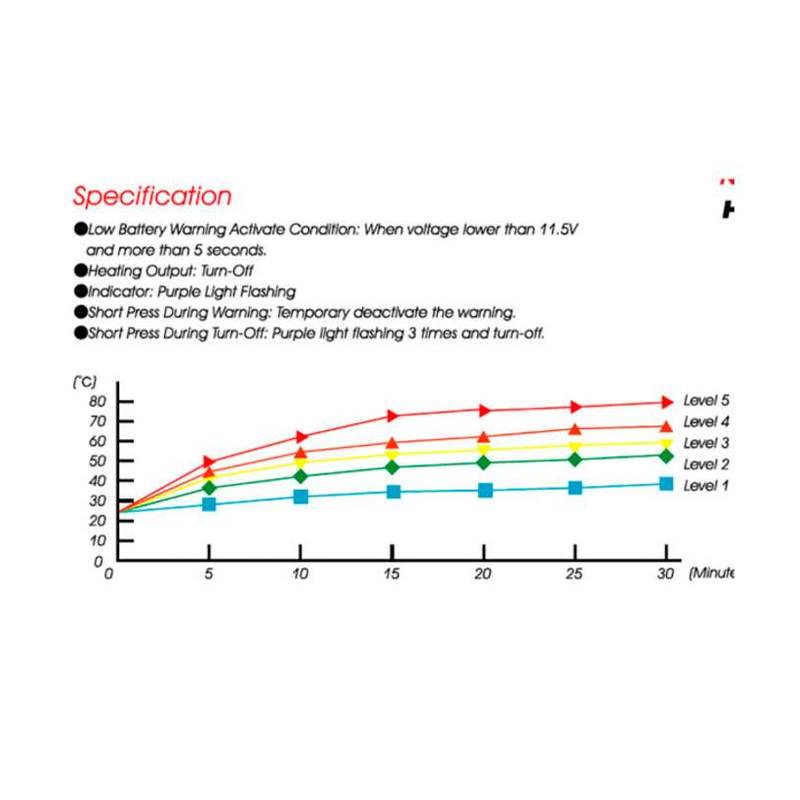 Mit dem 5-Stufen Temperaturregler in 5 verschiedenen Heizstufenfarben stellt man die Griffe einfach so ein, dass unkomfortable Temperaturen vermieden werden.