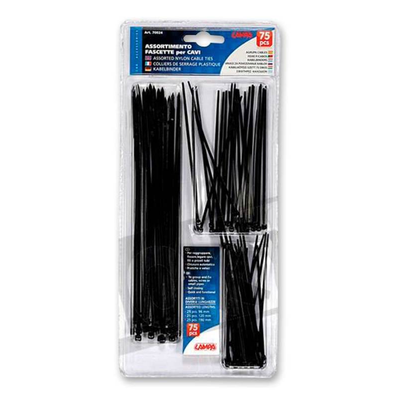Kabelbinder Sortiment schwarz 75 Stück mit 3 verschiedenen Längen.