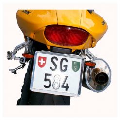 Mit diesem hochwertigen, verstellbaren Kennzeichenhalter aus Aluminium lässt sich viel Zeit bei der Montage von Kennzeichen einsparen. Der Kennzeichenwinkel lässt sich individuell einstellen. Mehrere 6mm Bohrungen an der Aufnahme ermöglichen die Montage an nahezu jedem Motorrad oder Scooter.