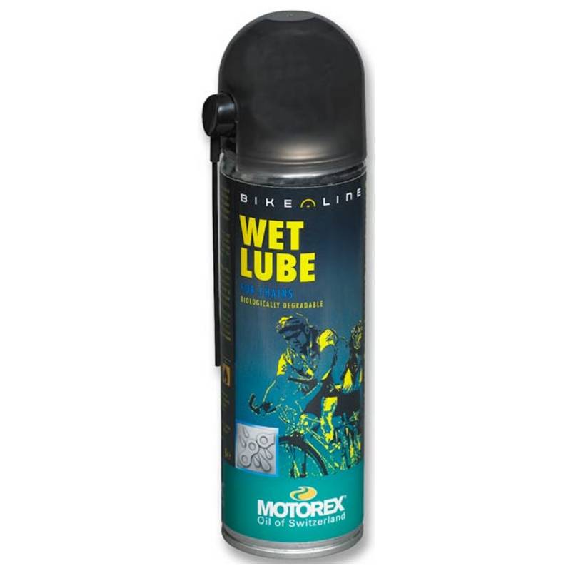 Kettenspray MOTOREX Wet Lube 300ml (VPE 12 Stück) Biologisch abbaubarer, vollsynthetischer Schmierstoff. MOTOREX WET LUBE dringt dank seiner Additive rasch und tief ein, schmiert optimal und schützt hervorragend vor Korrosion. Speziell entwickelt für Fahrbedingungen, die vom Schmiermittel eine Langzeit-Kettenhaftung fordern. Das Schmiermittel ist stark wasserabweisend und somit ideal bei feuchten und schlammigen Bedingungen.