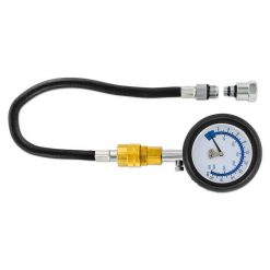 Dieses Kompressionmessgerät von Buzzetti wird mit drei Adapterschläuchen (25cm lang) für das jeweilige Zündkerzengewinde geliefert. Die Anzeige erfolgt analog per Zeiger.