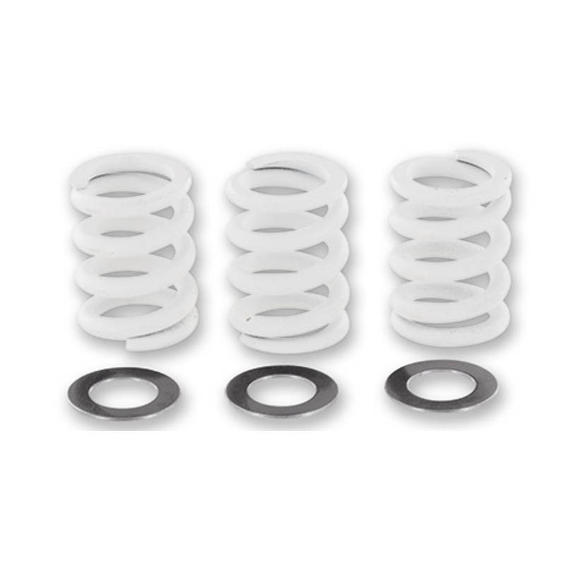 Kupplungsfedern für die SX50 Kupplung. Das Set besteht aus 3 Federn. Die Einkupplungsdrehzahl (Schlupfpunkt) ist je nach Öl, Korb, Belag, Spaltmass, Setup und Vorspannung bei ca. 5-7‘000 U/min. Die Federn sind aus Edelstahl und halten bis 240 Grad Celsius ohne Ermüdung aus.