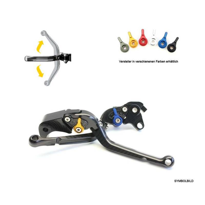 Kupplungshebel *PAZZO RACING* KLAPPBAR – KURZ in schwarz / Versteller in blau(CH- Homologiert) – ben. Adapter