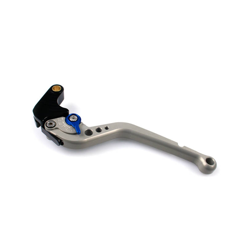 Kupplungshebel *PAZZO RACING* STARR – LANG in titan / Versteller in blau (CH-Homologiert) – ben. Adapter