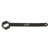 Die Kupplungshalter von Buzzetti sind zwei Werkzeuge in einem. Die Zapfen greifen in die Kupplungsglocke, dadurch läßt sich die Glocke einfach blockieren und die Mutter öffnen. Zum zweiten läßt sich mit dem Schlüssel die große Mutter der Kupplung entfernen.