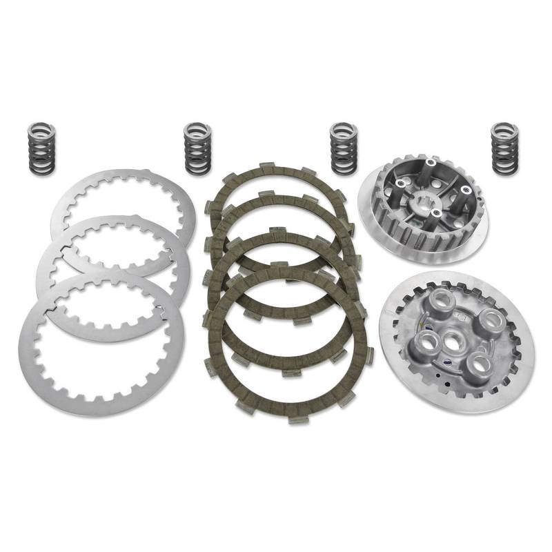 Hochertiges Kupplungspaket für den Minarelli AM6 Motor von Top Performances. Reibscheiben mit hohem Reibwert und guter Temperaturstabilität sowie stärkere Federn verhindern das Durchrutschen der Kupplung zuverlässig – selbst bei stark getunten Motoren.