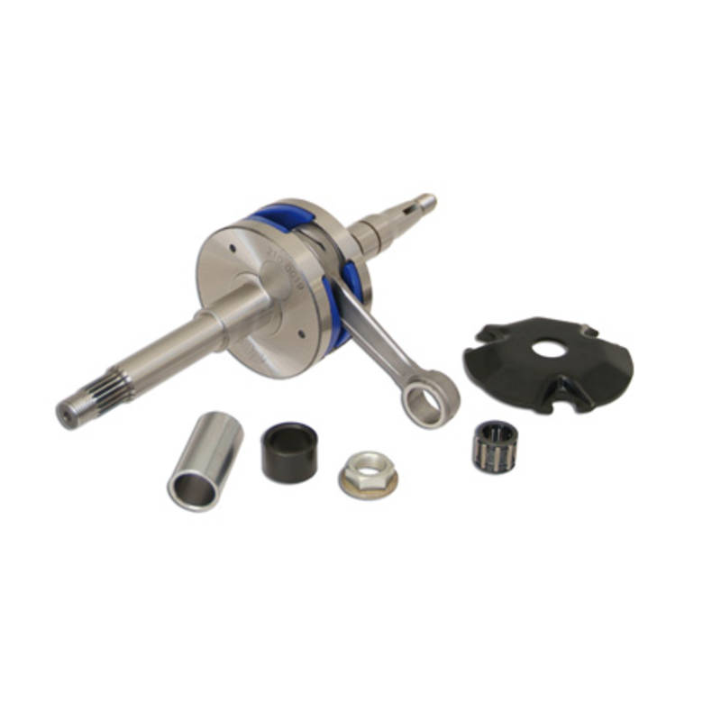 Das alte Konzept des verstärkten Variomatikstumpfes behält Polini bei der Evolution II Kurbelwelle bei und somit sind auch weiterhin die aufgedrehten Variomatiksteigscheiben im Lieferumfang enthalten. Natürlich können bei der Kurbelwelle auch Variatoren anderer Hersteller verbaut werden, dazu muss allerdings die Steigscheibe und evtl. auch die Laufbuchse auf die Kurbelwelle angepasst werden. Als hauptsächliche Neuerung fällt einem jedoch das geschmiedete Pleuel auf, welches man schon längst ganz ähnlich von der Stage6 R/T und Malossi MHR Team Kurbelwelle kennt.