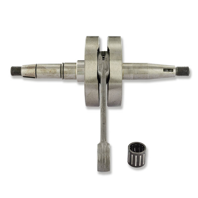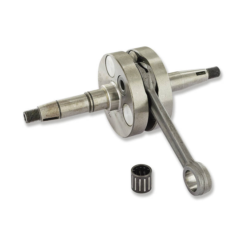 Die neue Rito Racing Vollwangen Kurbelwelle wird anders als die meisten Kurbelwellen mit 16mm Hubzapfen ausgeliefert. Der verstärkte Pleuel wurde zusätzlich auf beiden Seiten des hinteren Pleuelauges mit Schmiernuten sowie 2 Schmierbohrungen ausgestattet. Ein verstärktes Pleuellager sowie ein hochwertiges Kolbenbolzenlager runden diese 978gramm schwere Welle ab und machen sie gerade für leistungsstarke Motoren zur 1. Wahl.