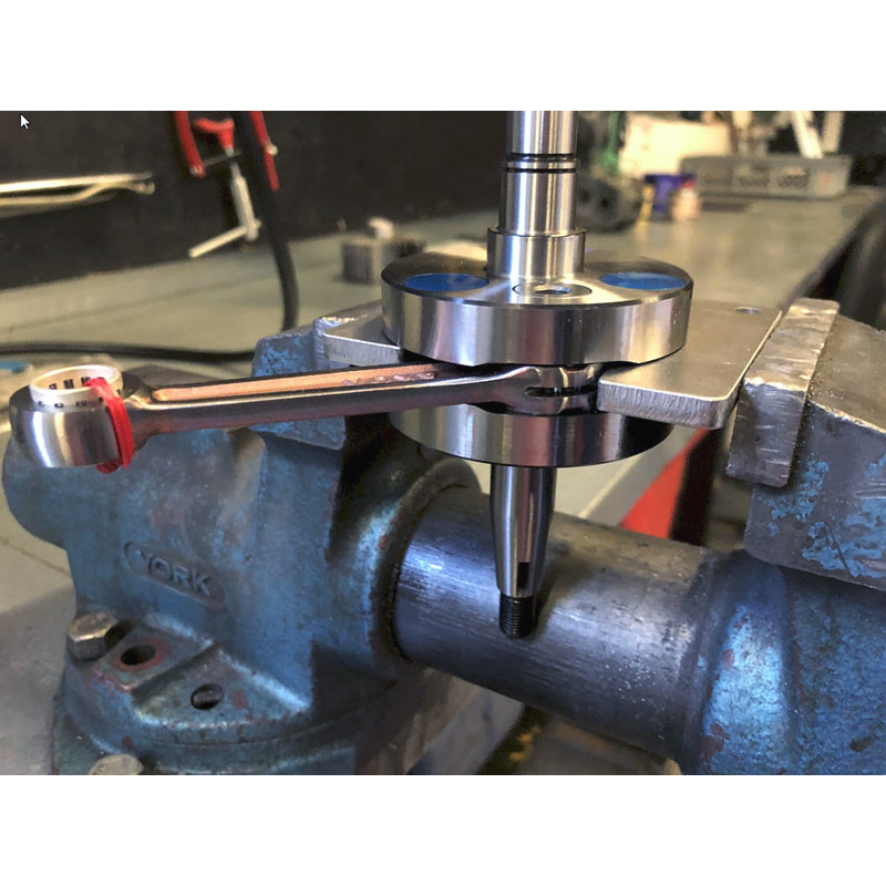 Die Platte wird zwischen die Wangen des Schraubstocks gespannt. Dies ermöglicht es, die Kurbelwellenlager fachmännisch aufzupressen (siehe Abbildung 3).