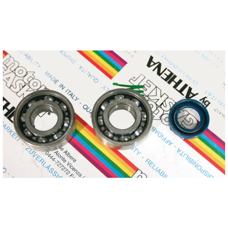 Kompletter Lagersatz und Simmerring für eine Kurbelwellenrevision bei allen Piaggio-Mofas.