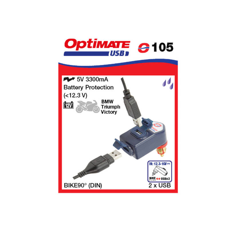 Ladegerät *tecMATE* DUAL USB universal 3300mA, Anschluss an Ø 21mm MOTORRAD-Buchse (OPTI 105)