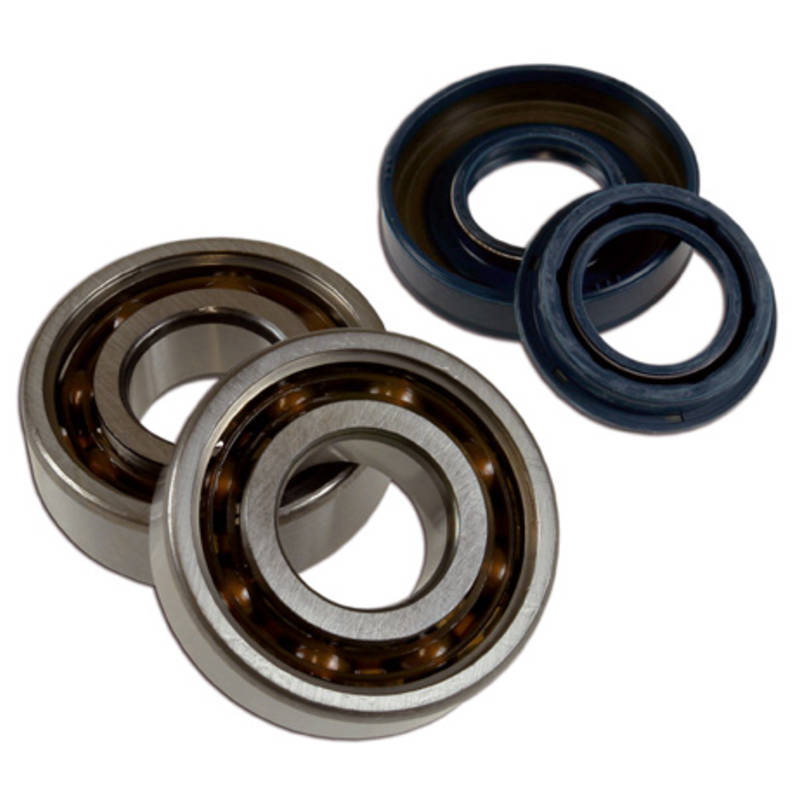 Gerade bei leistungsgesteigerten Motoren an der Qualität der Kurbelwellenlager zu sparen, ist sicherlich der falsche Ansatz. Aus diesem Grunde arbeitet Stage6 nur mit führenden europäischen und japanischen Lager- und Simmeringherstellern wie SKF und Corteco zusammen. Wir bieten euch unsere HQ-Kurbelwellenlager-Kits in 2 Ausführungen an, mit Metallkäfig oder Polymer-Kunststoffkäfig. Beide Typen sind von SKF für eine Grenzdrehzahl bis 20.000 U/min freigegeben und besitzen selbstverständlich die für Kurbelwellenlager notwendige erhöhte Lagerluft (C4). Voraussetzung für die Langlebigkeit der Lager ist natürlich die Gewährleistung ausreichender Schmierung und der sachgemäße Einbau der Lager und Kurbelwelle. Die Vorteile bei der Version aus Polymer-Kunststoff im Vergleich zu Metallkäfigen bestehen in der erhöhten Elastizität und der verringerten Reibung. Wichtig bei diesem Lagertyp, den wir persönlich für Rennmotoren bevorzugen, ist eine gute Vergaser- und Zündungseinstellung, da die Lager dauerhaft nur bis maximal 120° erwärmt werden dürfen, um Schäden am Kunststoffkäfig zu verhindern. Aus diesem Grunde eignen sich die TN9-Lager auch nicht für Motoren mit Katalysatoren! Bitte beachtet auch die Einbaurichtung: Der halboffene Käfig muss in Richtung der Kurbelwellenwangen eingebaut werden. Die Metallversion ist zwar robuster als der Kunststoffkäfig, aber durch die erhöhte Reibung- und Hitzeentwicklung auch einem größeren Verschleiß ausgesetzt.