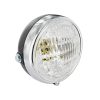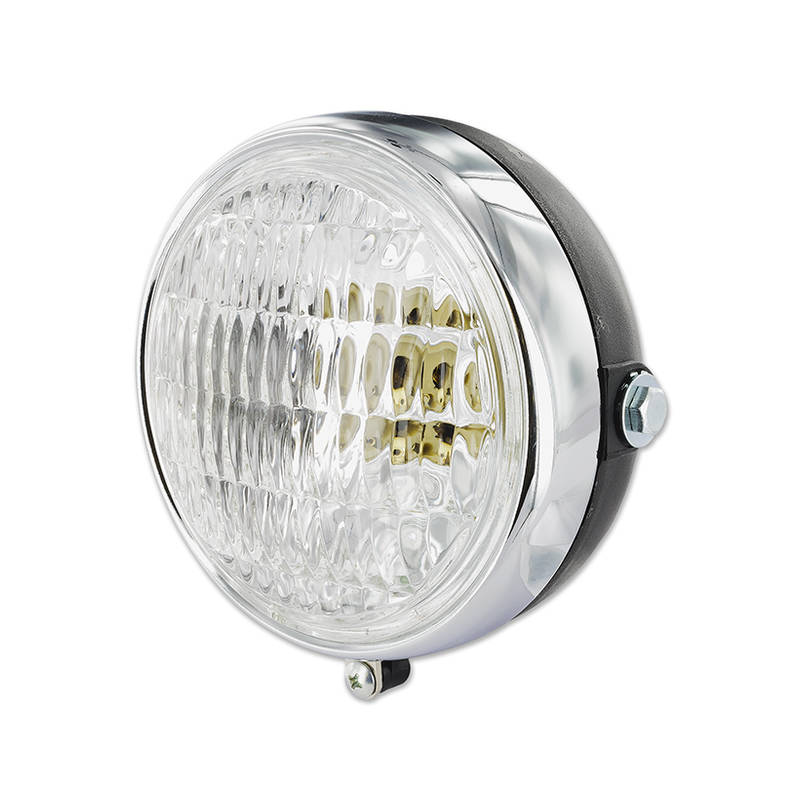Der hintere Teil der Lampe besteht aus einem widerstandsfähigen Kunststoff, der Lampenring vorne ist aus verchromtem Metall. Für die Montage an der Gabel befinden sich seitlich an der Lampe zwei Schrauben. Die Kontakte (Flachstecker 6.3mm) sind an der Rückseite der Lampe im Kunststoffgehäuse eingearbeitet.