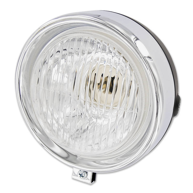Scheinwerfer in guter Qualität, matt-schwarz/chrom, ohne Schalter.