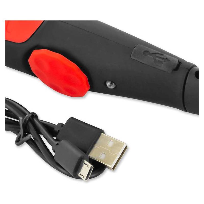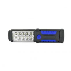Praktische LED-Lampe für die Werkstatt. 24 hell LED`s sind seitlich, eine sehr starke LED ist vorne angebracht. Betrieben wird sie mit 4x AAA Batterien, die im Lieferumfang enthalten sind.