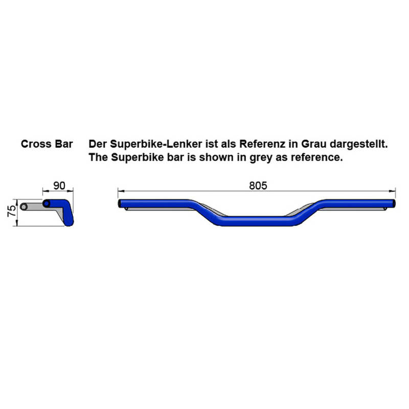 Lenker *LSL* CROSS BAR KONI (X00) Ø 22/28.6mm aus Alu in SCHWARZ MATT (B 805x H 75 – 90mm versetzt) (CH-Hom.)