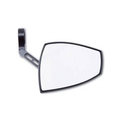 Der Lenkerendspiegel hat verschiedene Verstellungsmöglichkeiten und lässt sich in diversen Varianten am Motorrad montieren. Vom Lenker aus gesehen kann er nach oben oder nach unten zeigend befestigt werden. Zur Klemmung hin ist der Spiegelarm durch ein verstellbares Gelenk seitlich schwenkbar und ein Kugelgelenk am Spiegelgehäuse ist für optimale Sicht nach hinten im Winkel einstellbar. Der asymmetrische Spiegelkopf ist nach deinem persönlichen Geschmack umbaubar und kann um 180 Grad gedreht werden.