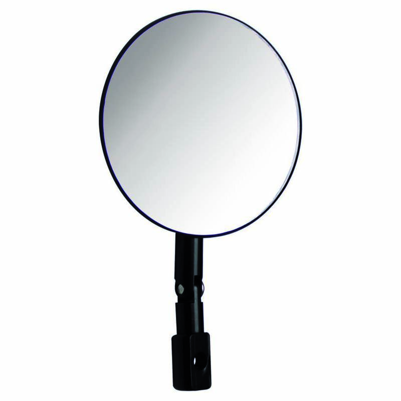 Schwarzer, runder Spiegel mit konvexem Glas (2.5mm), mit einer Höhe von 60mm ab Gelenk.