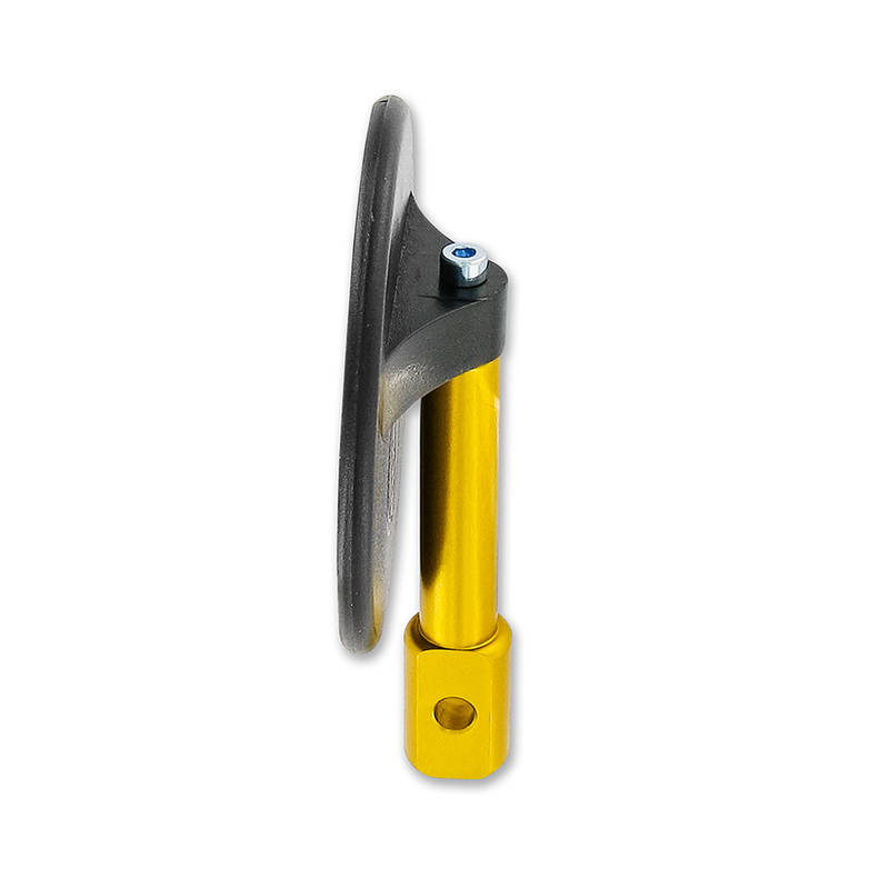 Rückspiegel für die Montage aussen am Lenkergewicht. Der Spiegelkörper lässt sich auf der Aluminium-Aufnahme drehen und ist somit höheneinstellbar (2 Positionen).