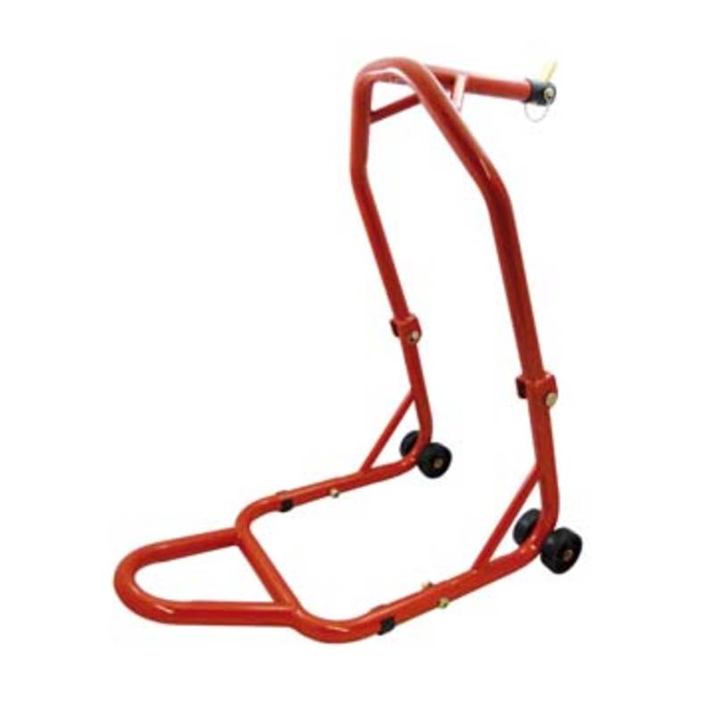Motorradständer für die Aufnahme beim Lenkkopf. Fünf verschiedene Adapter sind im Lieferumfang enthalten, was die Verwendung an nahezu jedem Motorrad garantiert. Er ist aus Stahlrohr mit 32mm Durchmesser und 1.5mm Wandstärke gefertigt und ist somit sehr stabil.