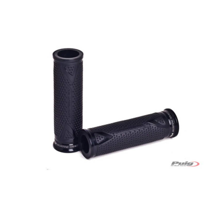 Sehr hochwertige Motorrad-Griffgummi von Puig Hi-Tech Parts mit eloxierten Aluminium-Bestandteilen.